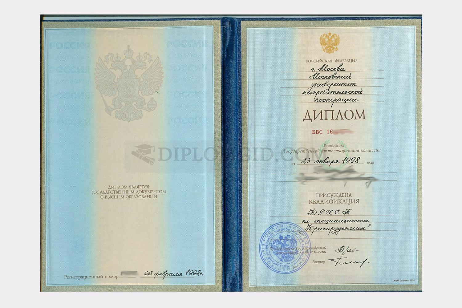На нашем сайте Вы можете купить диплом с окончанием в 1997-2003 годах без обучения, выданный любым ВУЗом Москвы и других городов России. В комплект входит бланк, обложка и приложение, оформленные по всем стандартам.